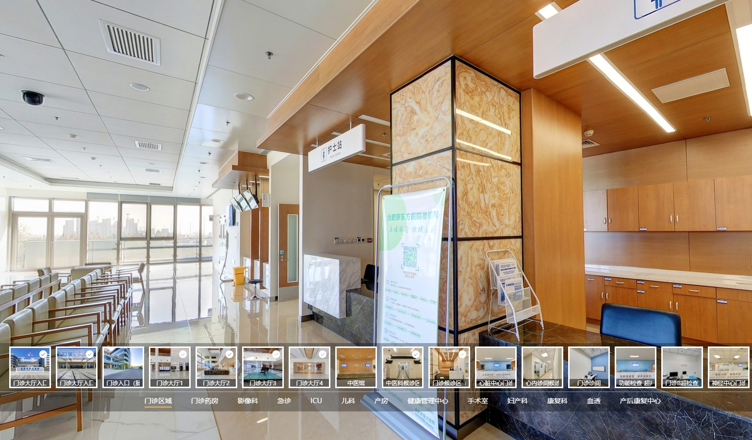 分形服務: 分形為合肥京東方醫院提供了 醫院網站定制設計、開發及制作,并實現了醫院全景展示,瀏覽者可以通過線上720度瀏覽醫院實景。