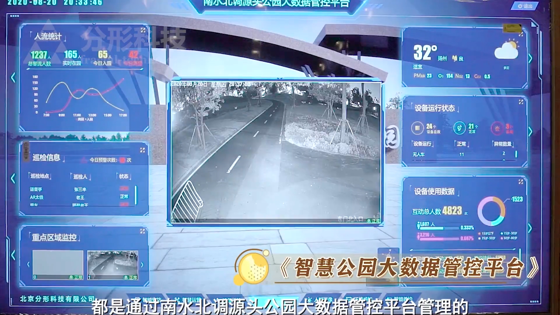比如AR太極、切水果大戰、智能語音亭、AI競速自行車、以及大數據管控平臺、數字孿生平臺。其中,智慧公園大數據管控平臺,相當于是公園的大腦。這個平臺主要通過環境感知,圖像分析,安防監控,客流統計,用戶行為分析等各項數據的綜合分析處理,來實現對公園內安防,養護,巡檢,互動設備的遠程智能化控制。