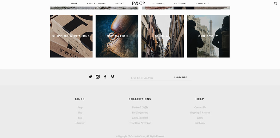 簡潔的設計方式,網頁更能夠呈現時尚感,非常適合服飾品牌網站的設計