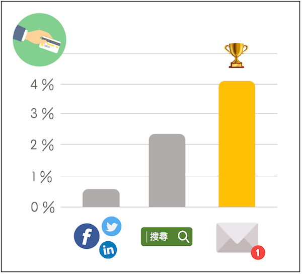 來自電子郵件的使用者進行消費的比例和轉換率,高于來自社群媒體和搜索引擎的使用者。 (Icon from flaticon)